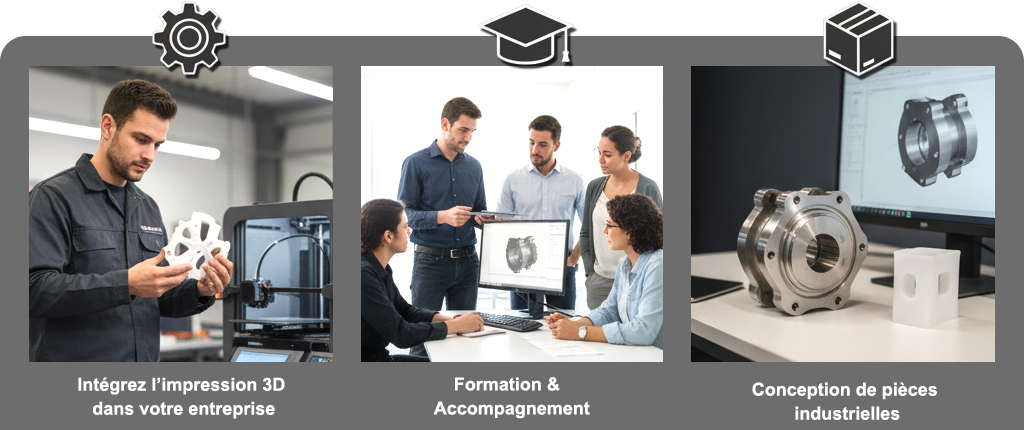 Formez vos équipes en 1 à 2 jours à l'impression 3D pour supprimer les délais externes et booster votre efficacité industrielle.