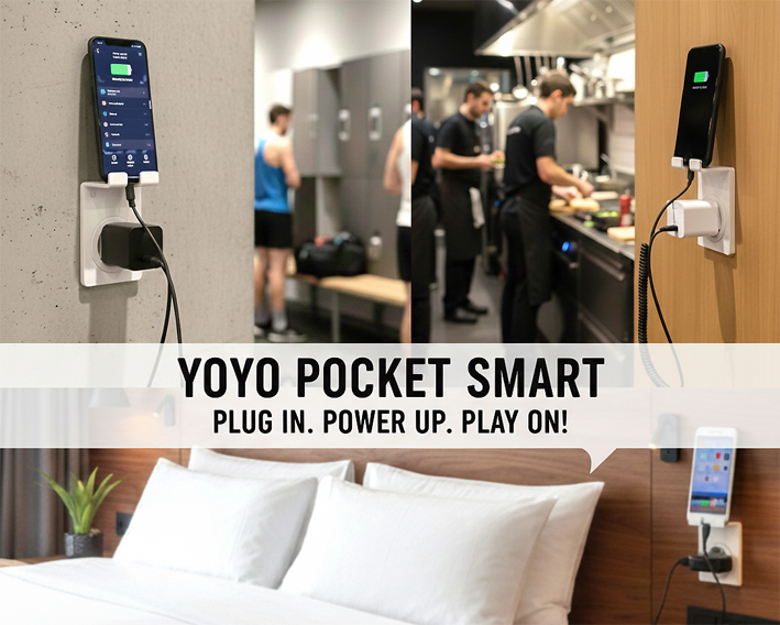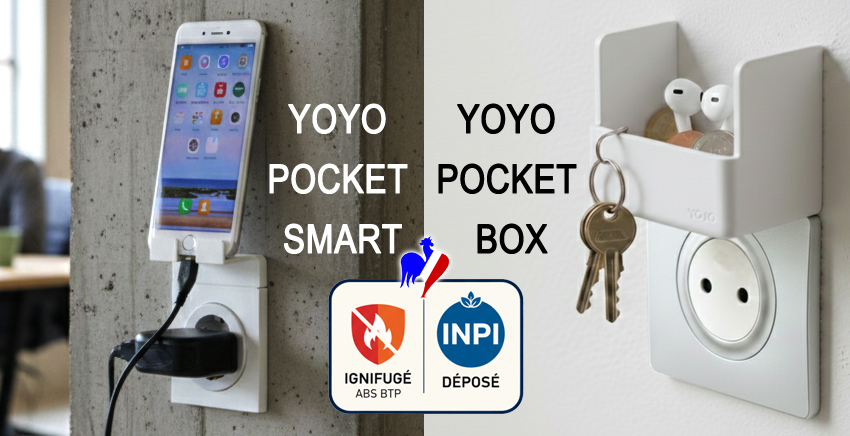 Le YOYO POCKET SMART transforme une prise murale standard en point de charge propre, stable et fonctionnel.